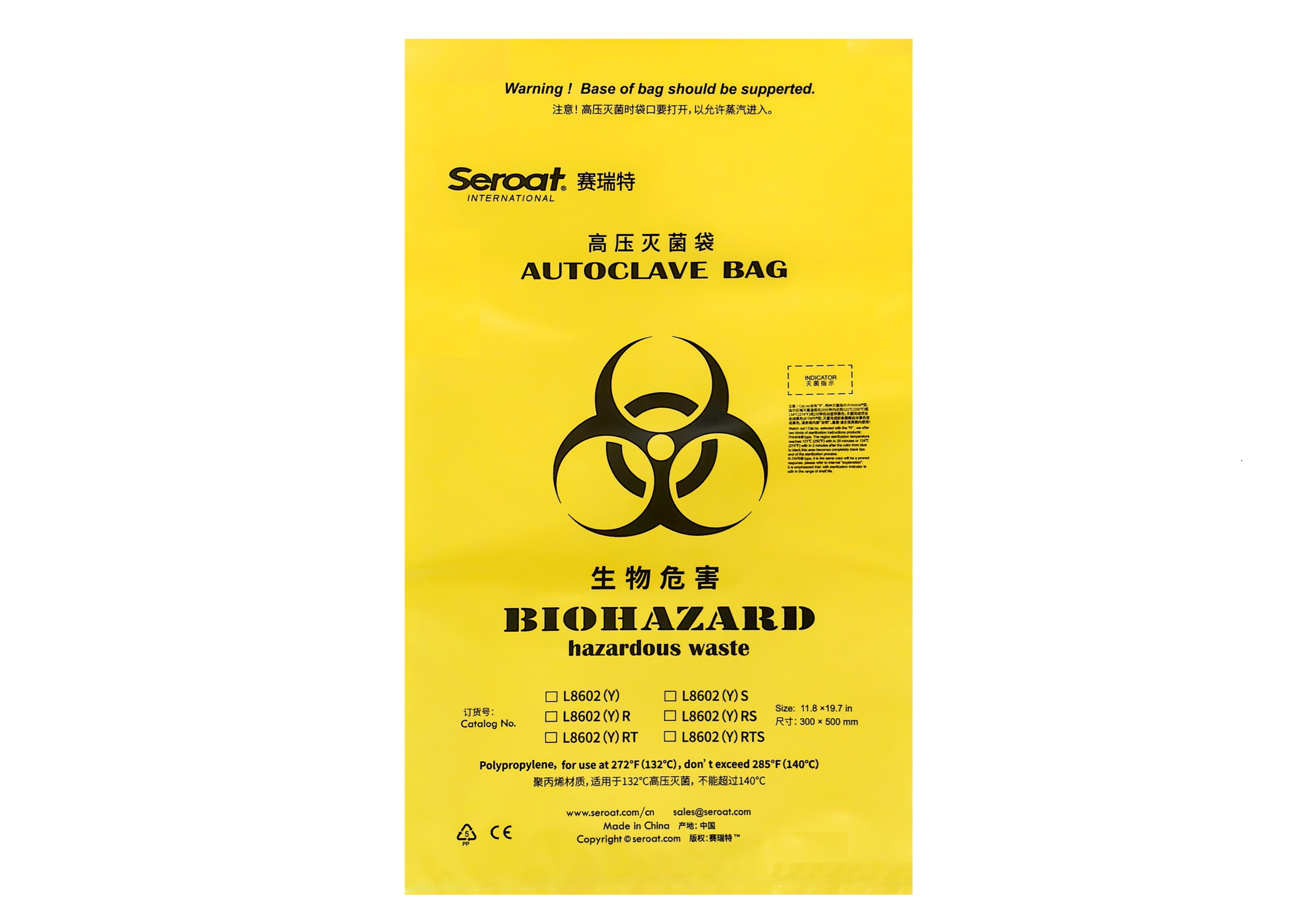 中英文印刷版面,袋身圖案采用特殊油墨,牢固度更高,確保在滅菌中印刷字符不會出現(xiàn)掉墨、脫墨、反粘現(xiàn)象,保證袋面清潔與美觀。此外,袋身兩側(cè)無封口,底部封口技術(shù)全面升級,更加牢固可靠,確保高壓滅菌過程中的安全性與密封性。